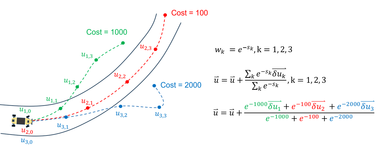 Model Predictive Path Integral (MPPI) is a sampling-based controller that can handle discontinuous cost functions. Unlike gradient-based methods, it does not rely on derivatives, enabling compatibility with a wide variety of system dynamics—including neural networks.