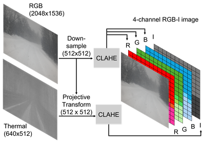 - The RGB image and thermal image are downsampled to 512 x 512 pixels
