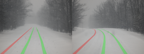 - Each value ∈ [0,1] represents the predicted likelihood of the corresponding image pixel belonging to a wheel track