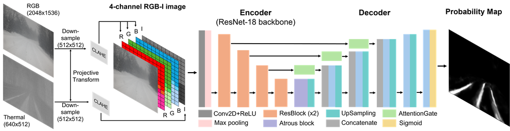 - Attention Gates focus on wheel tracks by amplifying rare pixel classes (addressing severe class imbalance).