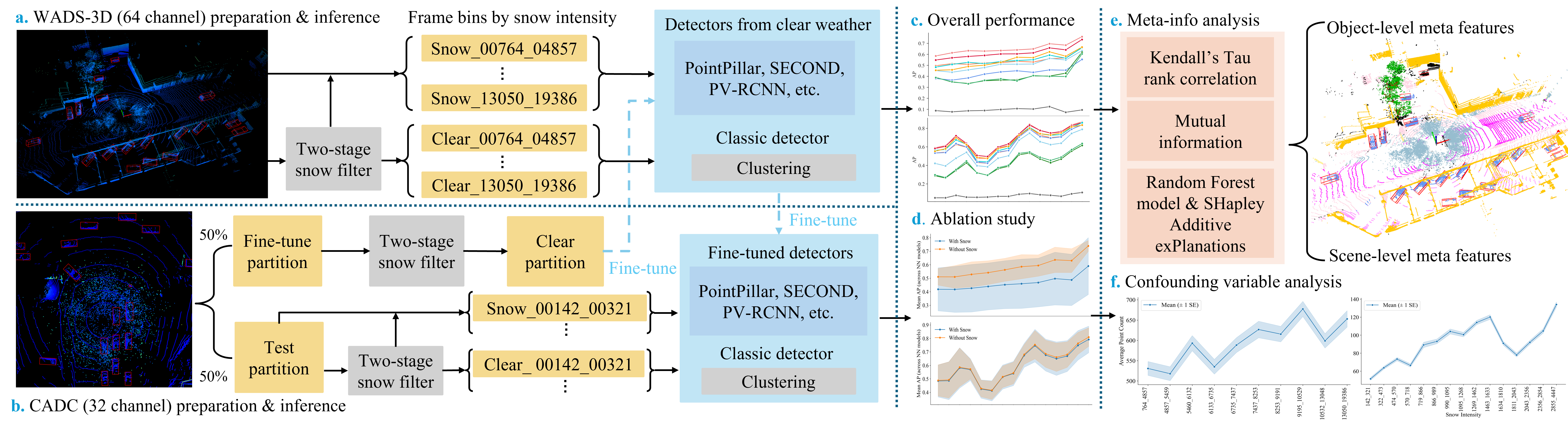 Prior research on LiDAR-based 3D object detection in snow relies heavily on coarse qualitative assessments and treats deep learning models as black boxes, failing to distinguish whether performance drops stem directly from snowfall or from confounding environmental factors. To address this ambiguity, we introduce WADS-3D, which pairs LiDAR data with granular, high-rate snowfall intensity measurements to benchmark ten diverse detectors. By applying a rigorous multivariate analysis framework, we disentangle the true impact of snow from correlated object and scene meta-information, offering the first systematic assessment of perception robustness in continuous weather degradation.